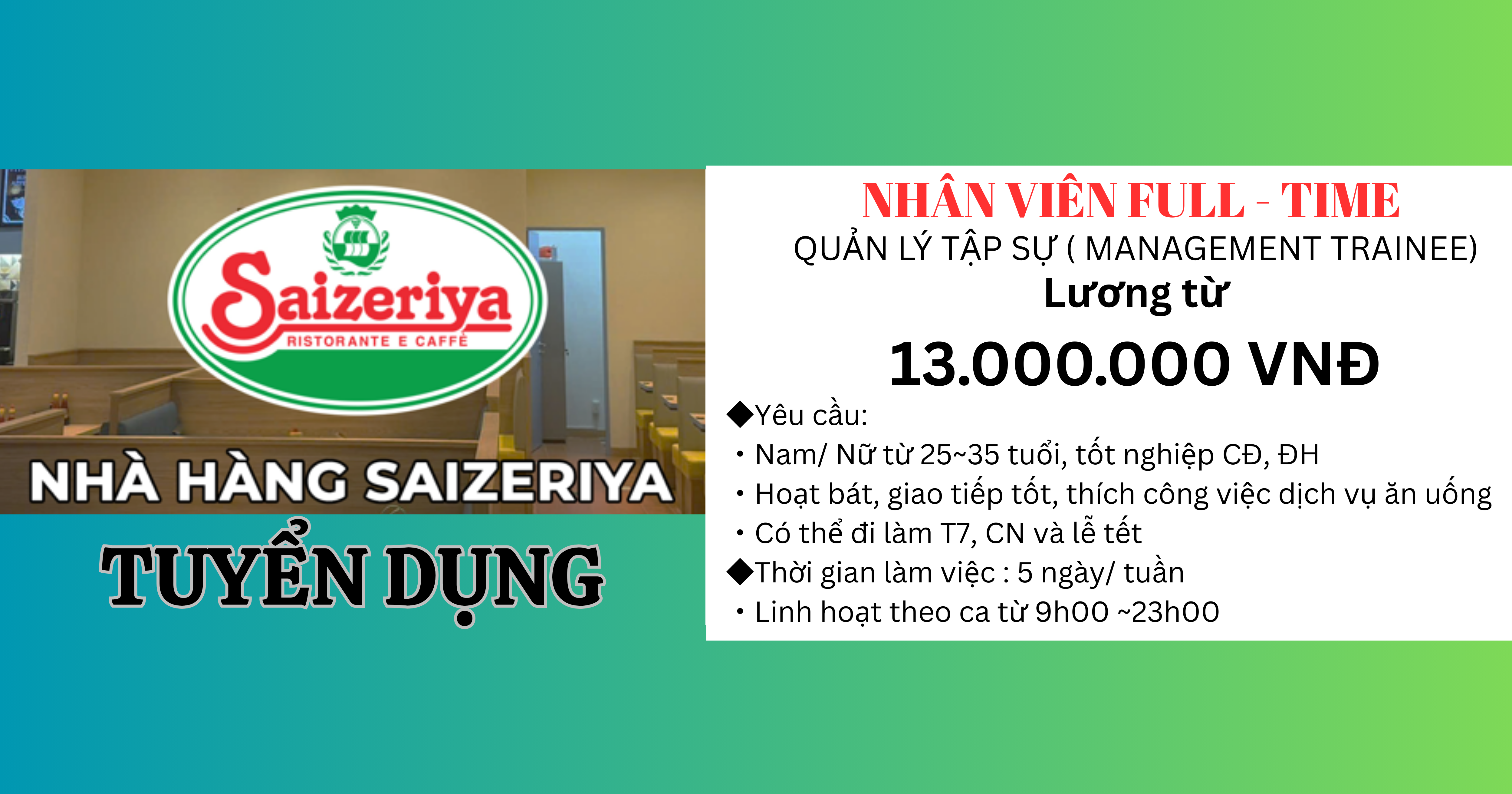 Được đào tạo theo chương trình Saizeriya Management Trainee là vị trí đào tạo quản lý tương lai cho chuỗi nhà hàng Saizeriya.