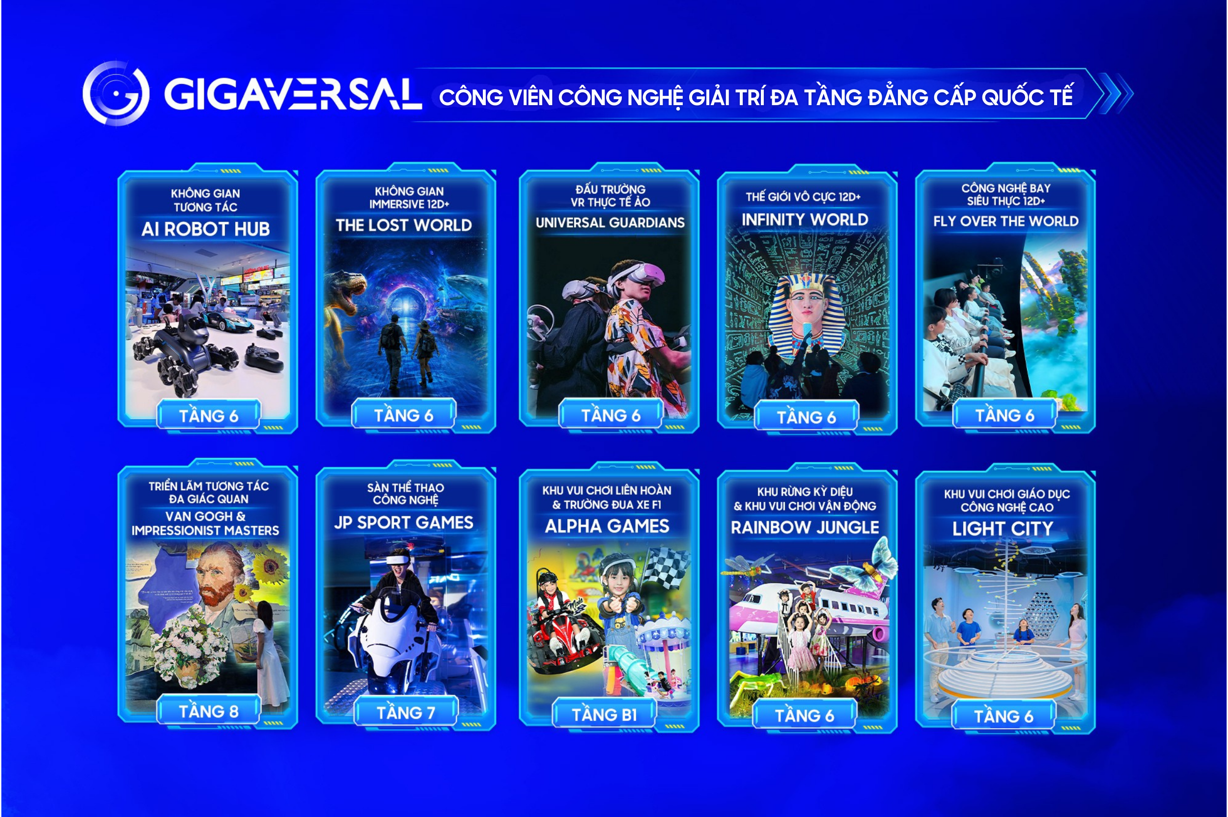 Với quy mô 12.000m² trải rộng suốt 8 tầng của TTTM Gigamall, Gigaversal mang đến 6 phân khu trải nghiệm đa giác quan đầy cảm hứng và bùng nổ cảm xúc dành cho tất cả mọi người. Không đơn thuần là một trò chơi ảo, đây chính là cánh cửa mở ra thế giới rộng lớn, kích thích trí tưởng tượng và khao khát chinh phục của cả trẻ em lẫn người lớn.
