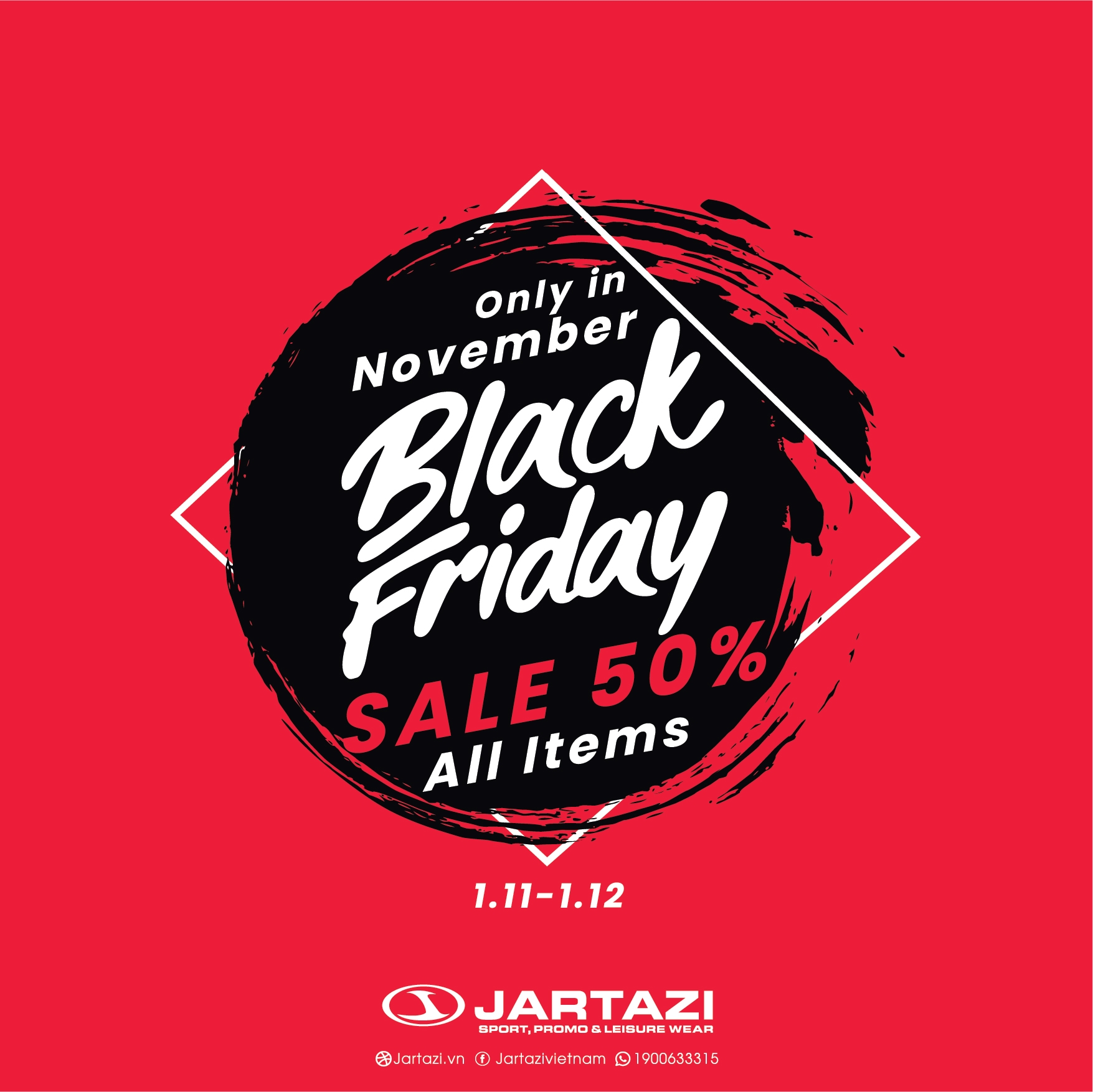 Chương trình khuyến mãi lớn 𝐁𝐋𝐀𝐂𝐊 𝐅𝐑𝐈𝐃𝐀𝐘 - Sale upto 50% cho toàn bộ sản phẩm thời trang thể thao Jartazi