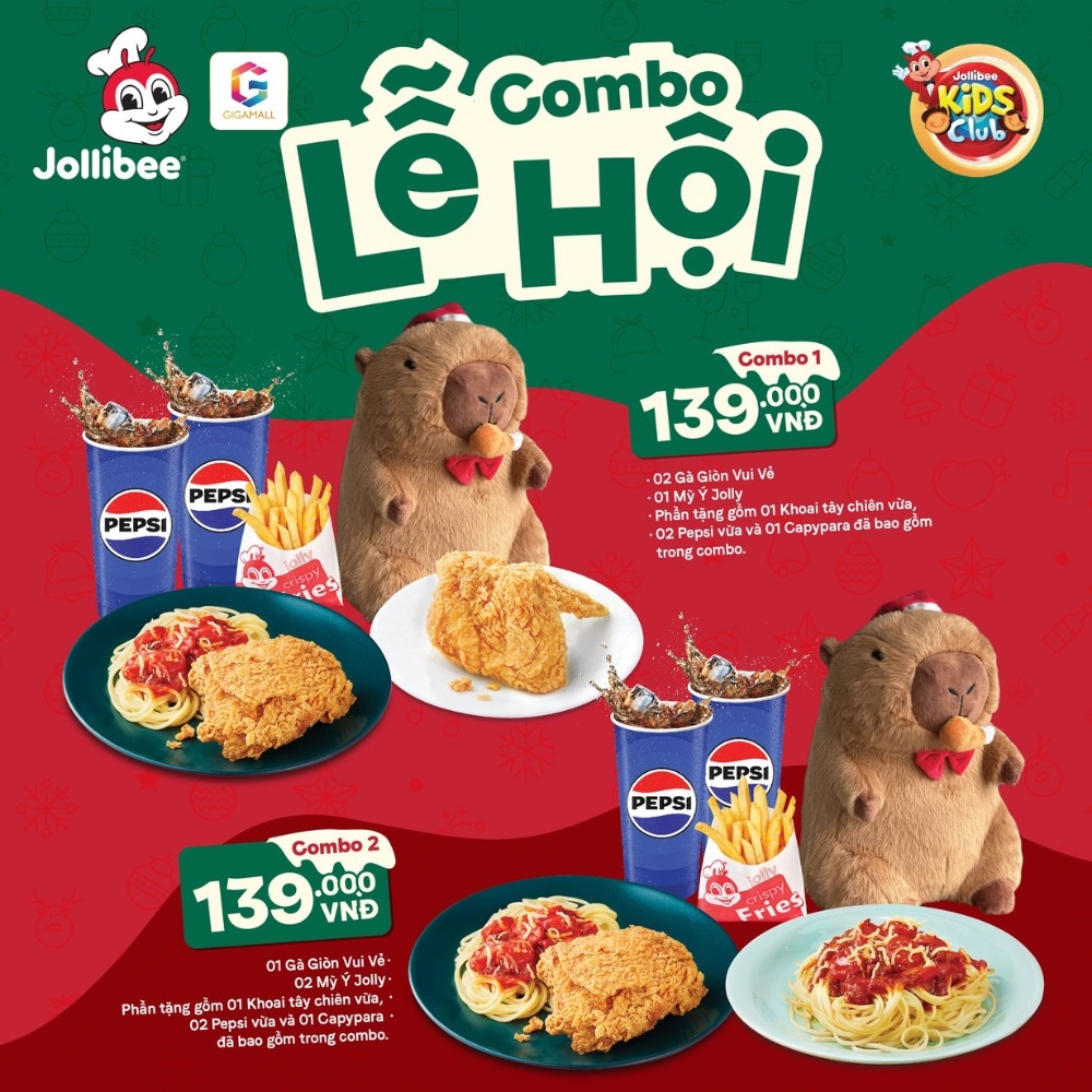 Combo lễ hội đã có mặt, ghé liền Jollibee nhận ngay Gấu Capypara Jollibee với combo chỉ từ 139.000đ gồm: