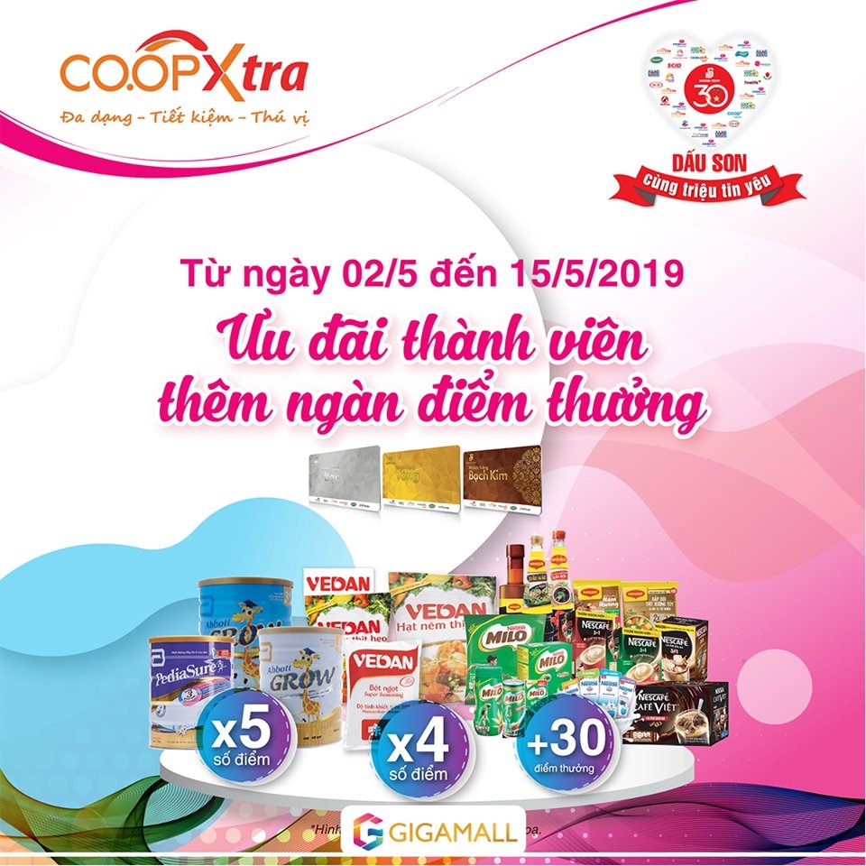 Chương trình ưu đãi TV - Thêm ngàn điểm thưởng từ 2/5 đến 15/5/2019 dành cho khách hàng có thẻ Bạc/Vàng/Bạch Kim tại Co.opXtra: